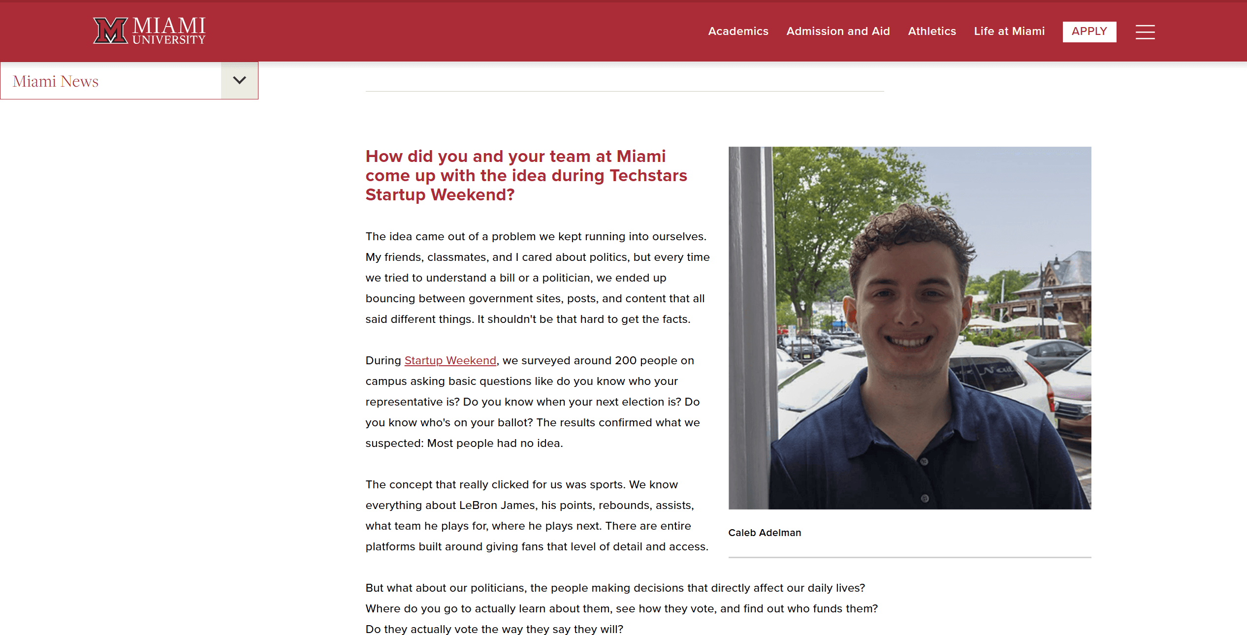 PILLARS was recently featured in Miami University's official news publication. Founder Caleb Adelman sat down for a Q&A covering the story behind the app, how it started at Techstars Startup Weekend, and what it means to launch a civic engagement app heading into the 2026 midterms.